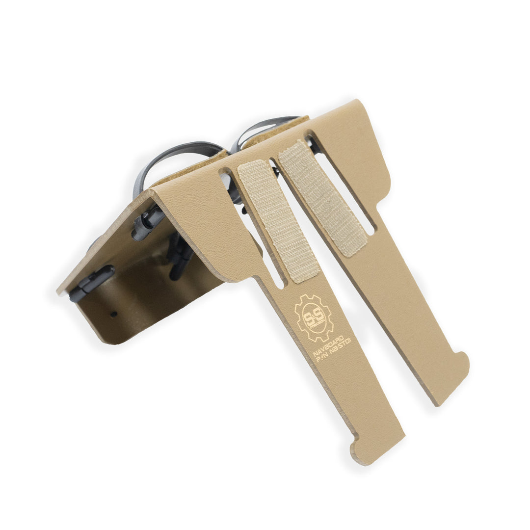 The NavBoard Stubby is designed to accommodate up to 2 handheld GPS systems simultaneously (not included). Can mount into the front pouch of an armor carrier, magazine pouch, or parachute chest strap.