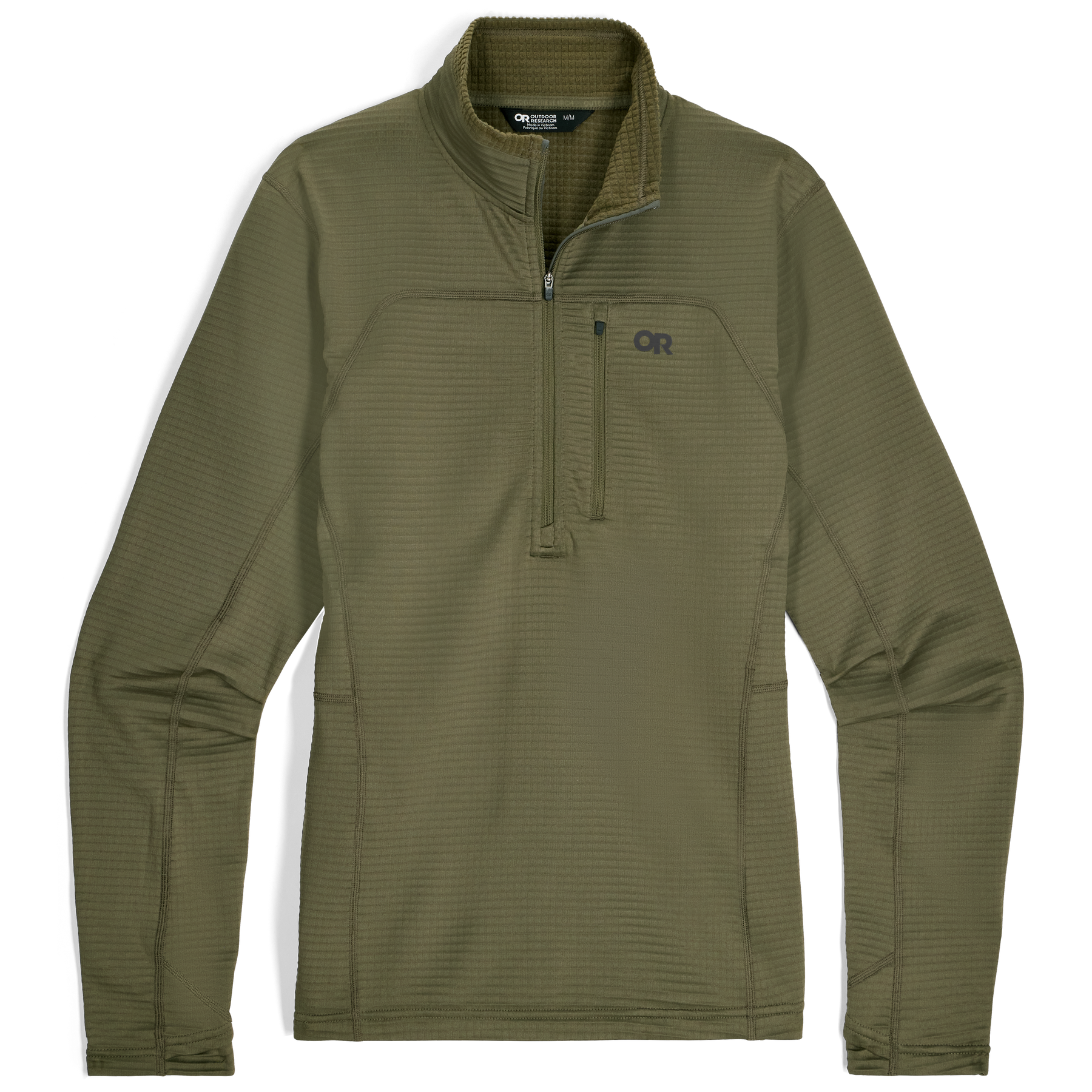 Crafted from a bluesign® approved polyester blend, the breathable and insulating Vigor Grid Fleece features thermoregulating ActiveTemp™, a technology that adjusts to body temperature to keep you comfortable during active start-stop activities. The material's movement-mirroring stretch and raglan sleeves allow for an unrestricted range of motion. The flat-seam construction and chafe-free design with dynamic reach provide all-day comfort. Ergonomic-fit thumb holes keep the sleeves pulled down where you like them, and a zip chest pocket keeps gels and phones close by.