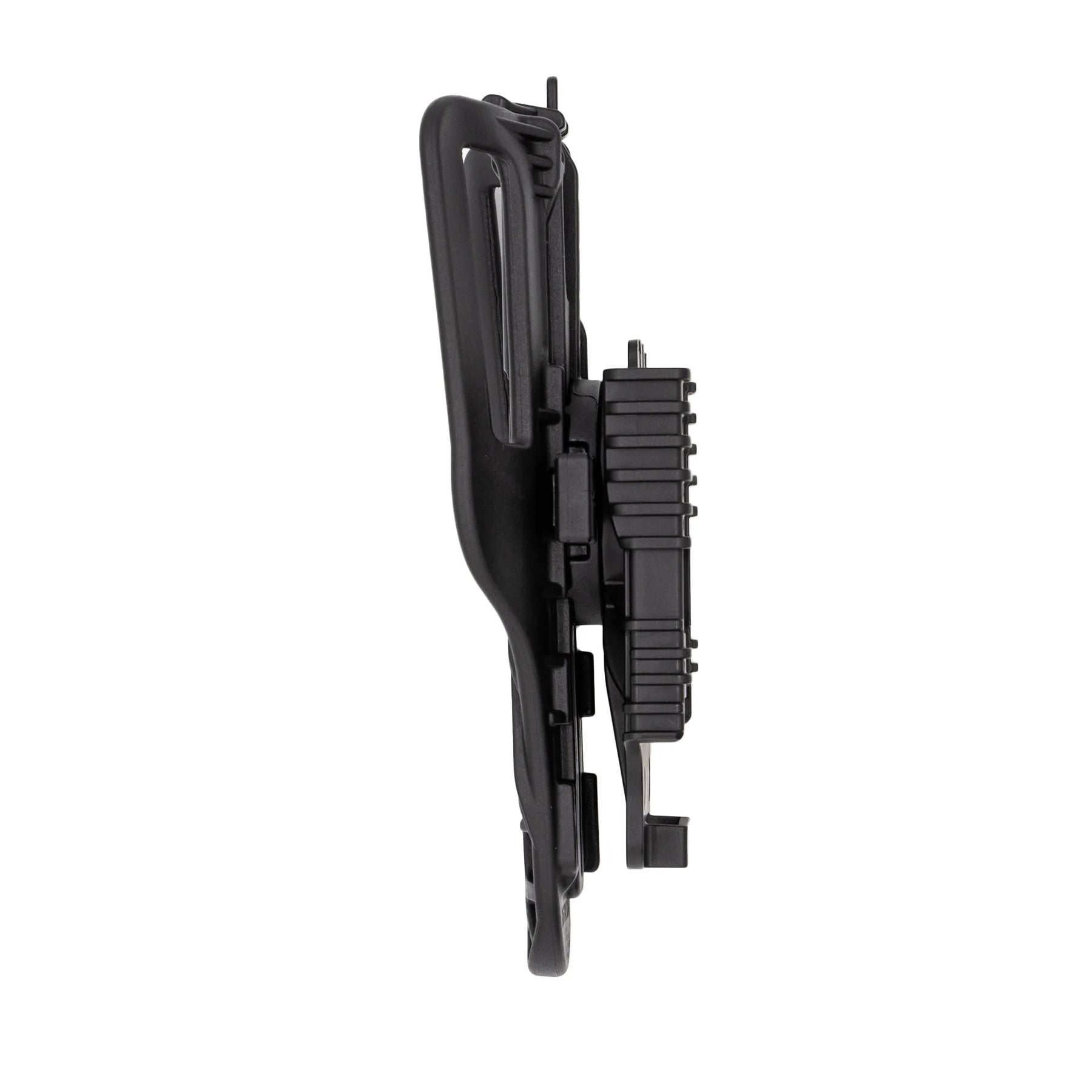 The QLS Universal Belt Loop (QUBL) allows the user to easily raise and lower their holster from Low-ride, Mid-ride or High-ride holster height positions without any tools. Based on the VUBL design, the QUBL sits close to the body and is extremely adaptable, enabling quick attachment and detachment of gear from the QLS mounting platform.
