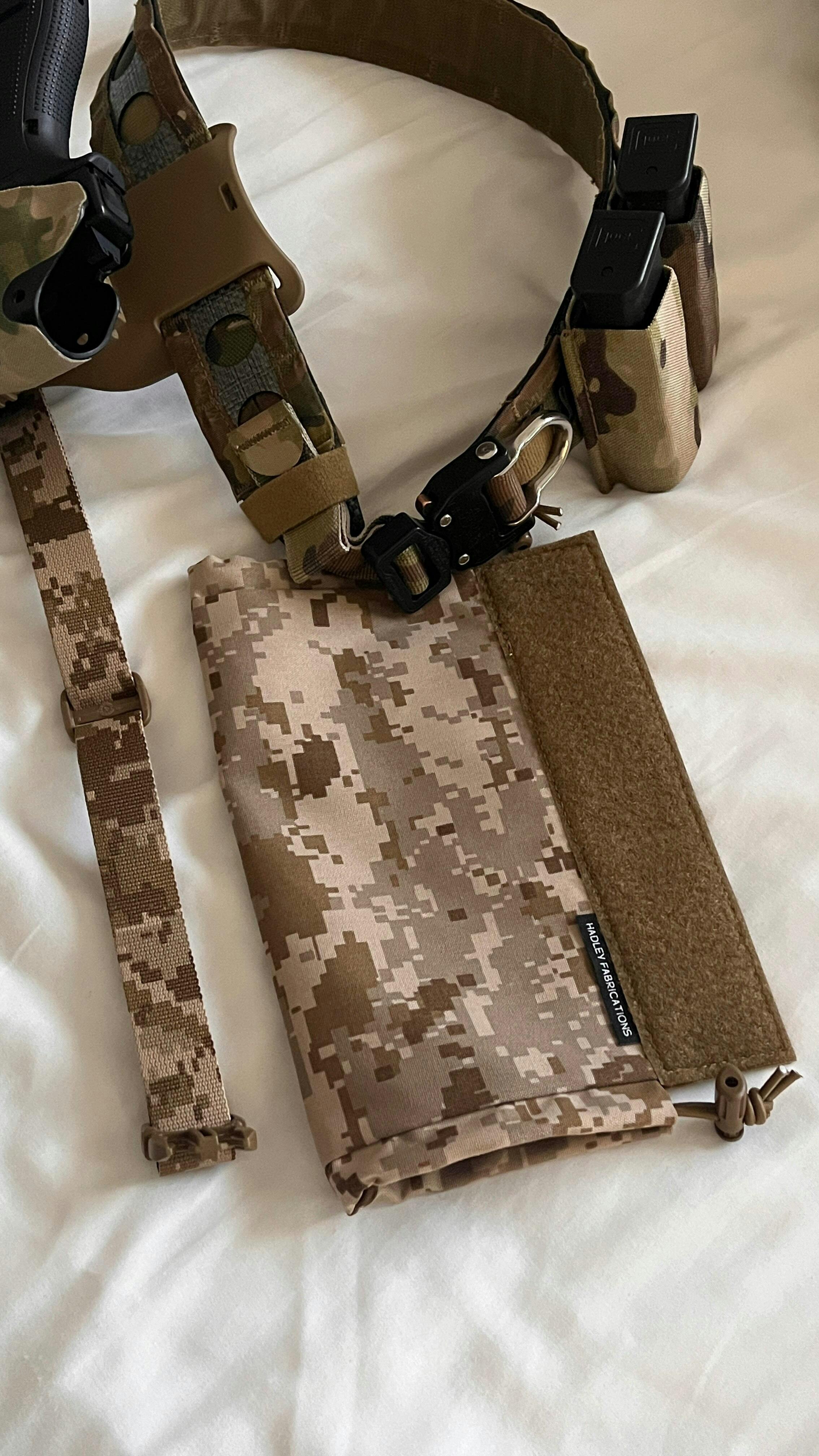 The idea for this solution was born from watching teammates constantly adjust or undo their issued holster leg straps for comfort while on multi-day missions. The current products on the market are typically made purely from elastic, which gets uncomfortable after extended use causing hot spots, clothes to bunch up, and pressure spots. Other nylon leg straps on the market don't have enough stretch and flexibility for duty use.
