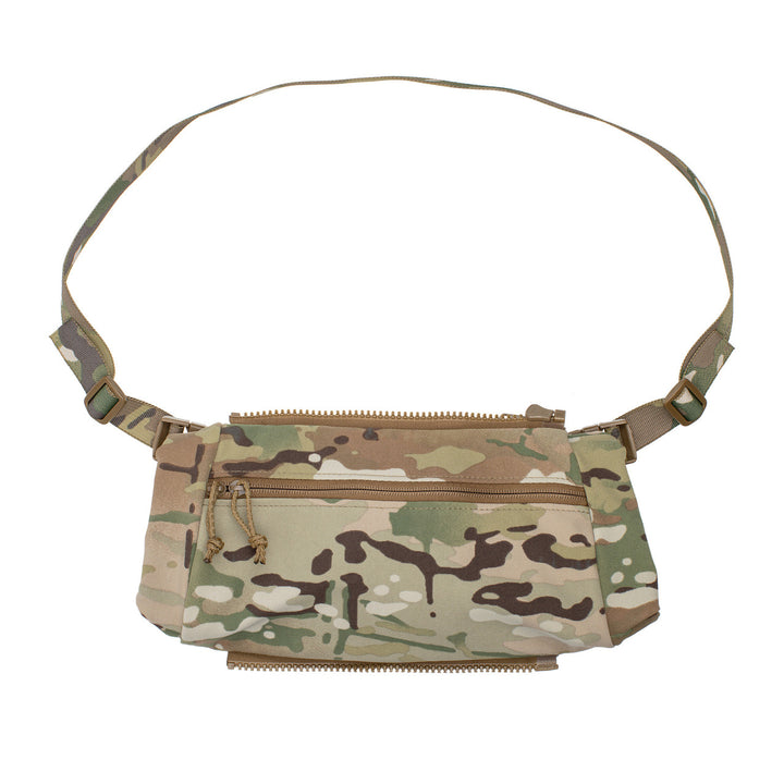 The MUFF is a stowable, sub-abdominal handwarmer designed in collaboration with WRMFZY. It was built to remedy to the pain of operating in cold temperatures, and having nowhere for hands to retreat to in between fine motor skill tasks. Unlike much bulkier offerings, The MUFF is designed to be compact and stay out of your way when not in use. It also features a multi-purpose gear pocket, so the wearer does not have to sacrifice as much valuable storage real estate on the body in exchange for maintaining finger dexterity in the winter.