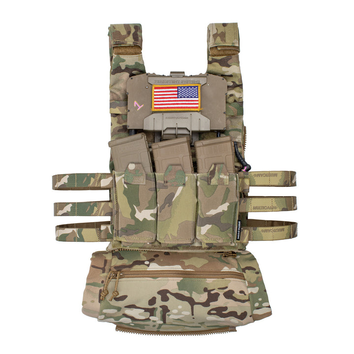 The MUFF can be mounted to the bottom of a Spiritus Systems plate carrier or chest rig system using the integrated hook & loop tab, or as a standalone waist pack when used with the included waist strap. The MUFF features a compressible main compartment that is lined with Polartec Wind Pro® and capped on both sides with an elastic cuff that helps seal in heat and keep out wind when in use. The outer shell is a combination of stretch woven and Cordura for a functional mixture of comfort, and abrasion resistance in high-wear areas.
