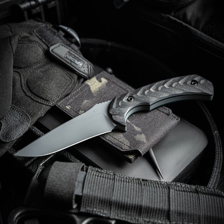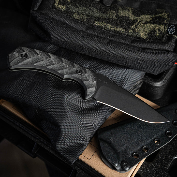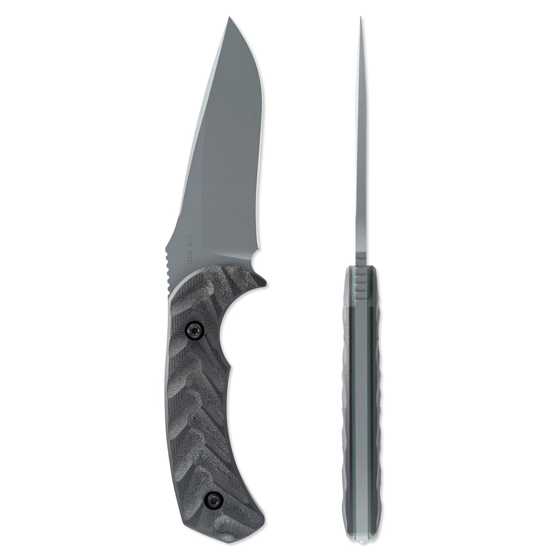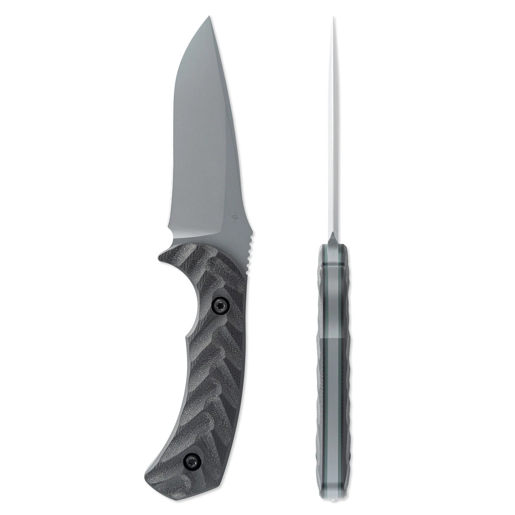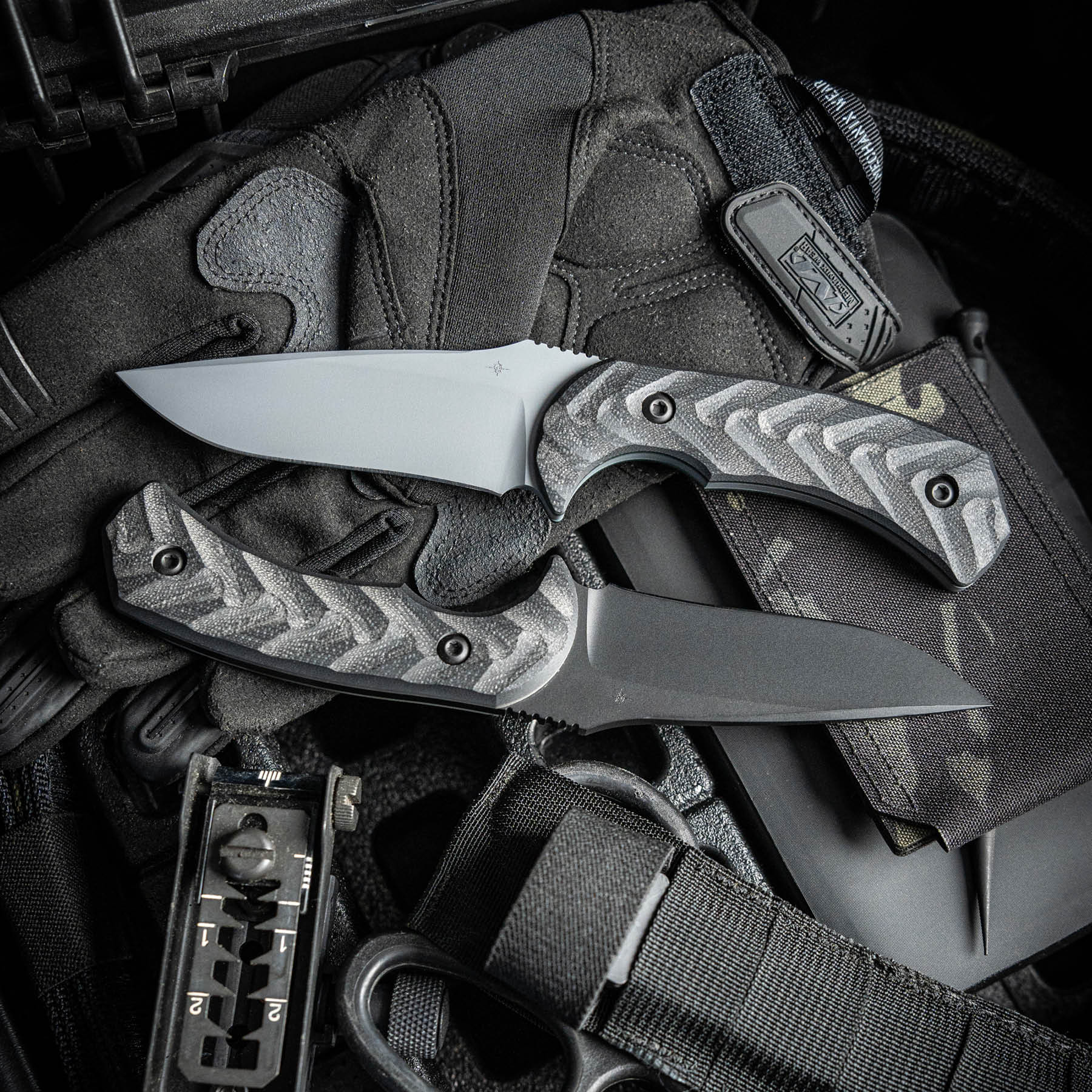 Crafted from CPM M4 steel, this blade features a short swerve grind that reinforces the tip and minimizes resistance when penetrating tough surfaces. With an overall length of 8.5”, a weight of 7.5 oz., and a blade thickness of 0.1875”, the Mullet S fills the gap in the lineup as a midsized fixed blade, slightly larger and heavier than the Krypteia. The Mullet S is now available in Phantom Grey and SOCOM Black finishes and is fitted with G10 handles, featuring Toor Knives’ signature texture, providing an extremely comfortable in-hand grip.